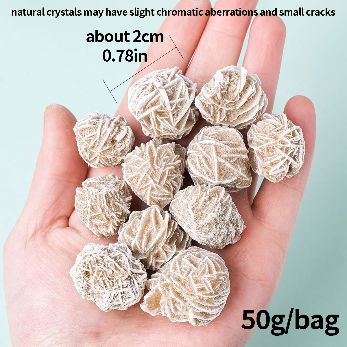 This 50g bag of raw Desert Rose Quartz stones offers you a small yet powerful collection of natural beauty and metaphysical energy. Known for their gentle vibrations, these stones are ideal for those seeking balance, grounding, and protection. They are often used in energy healing, Feng Shui, and spiritual practices to promote calmness and clarity. Each stone is unique, with variations in color and pattern, making your set truly one-of-a-kind.