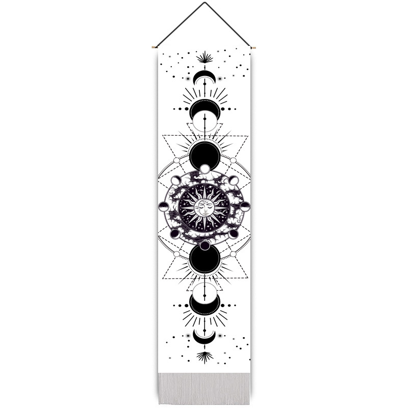 Transform any room with the captivating beauty of the Black and White Lunar Eclipse Wall Tapestry. This stunning piece of wall decor brings a sense of mystery and romance to your space, with its intricate design of a lunar eclipse against a minimalistic black and white backdrop. Crafted from high-quality polyester cotton, this tapestry delivers a soft, natural texture that complements its artistic appeal. It’s the perfect blend of bohemian style and Northern European design, ideal for adding a serene yet bold statement to your home.