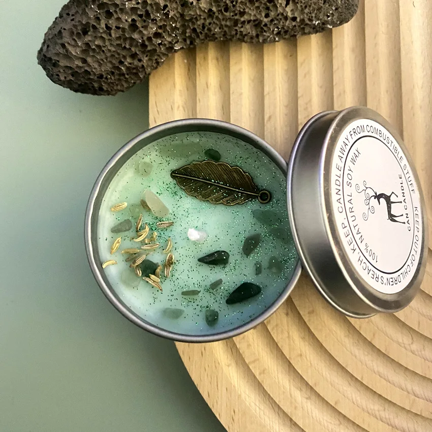 Transform your home into a serene oasis with our 8OZ Crystal Scented Candles. These exquisite candles are meticulously crafted with real herbs and infused with soothing scents, offering a perfect blend of luxury and tranquility. Encased in a stylish tin jar, these candles make an elegant addition to any room and are ideal for creating a warm, inviting atmosphere.