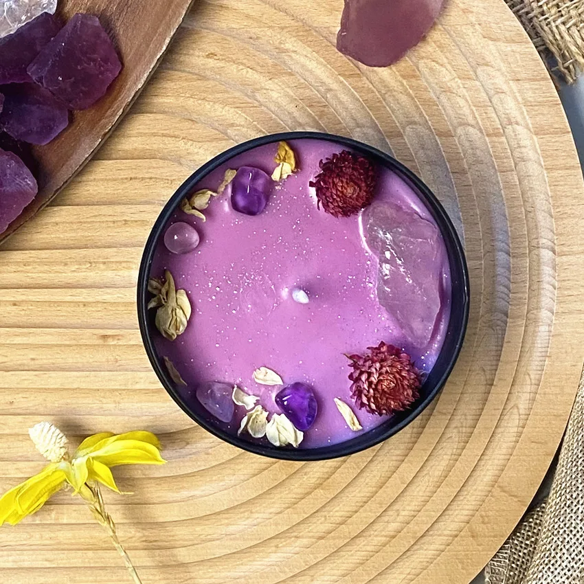 Our crystal candles are handmade with premium soy wax, ensuring a clean, eco-friendly burn. The addition of real herbs enhances the visual appeal, making these candles not just a source of light and fragrance, but also a beautiful piece of home décor. Whether you’re looking to unwind after a long day or set the mood for a special occasion, our scented candles are the perfect choice.