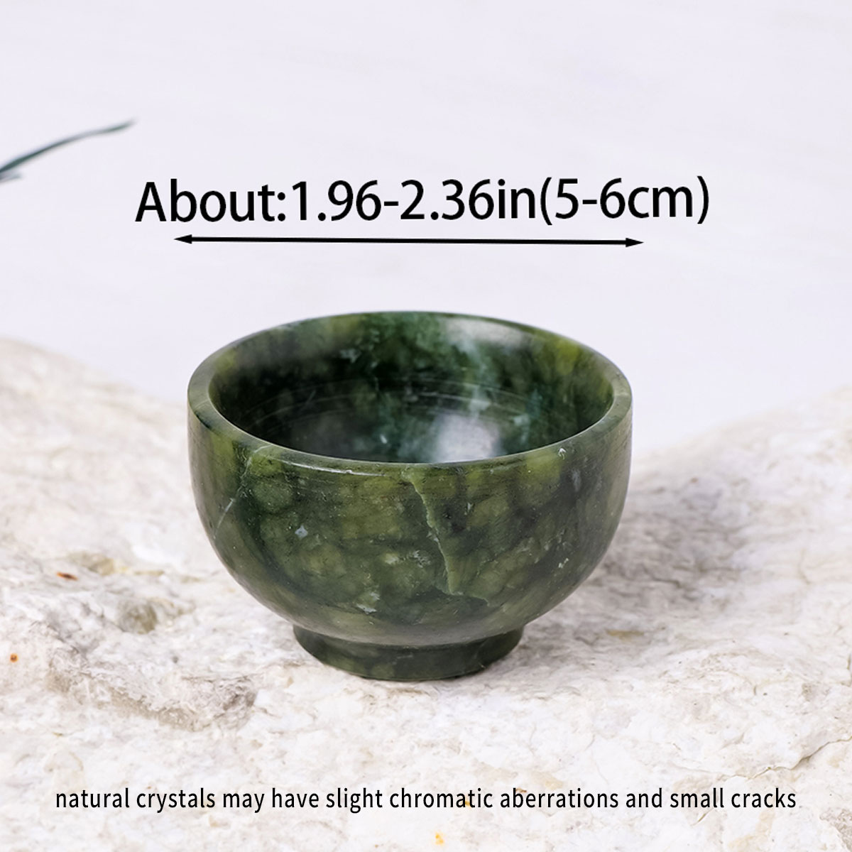 This stunning jade bowl is more than just a decorative item. Green jade has long been revered for its healing properties and ability to promote emotional balance and protection. Each bowl is handmade, showcasing the craftsmanship of traditional folk art while retaining the natural beauty of the crystal. The natural variations in color and small cracks add to the uniqueness of each piece, making it truly one-of-a-kind.