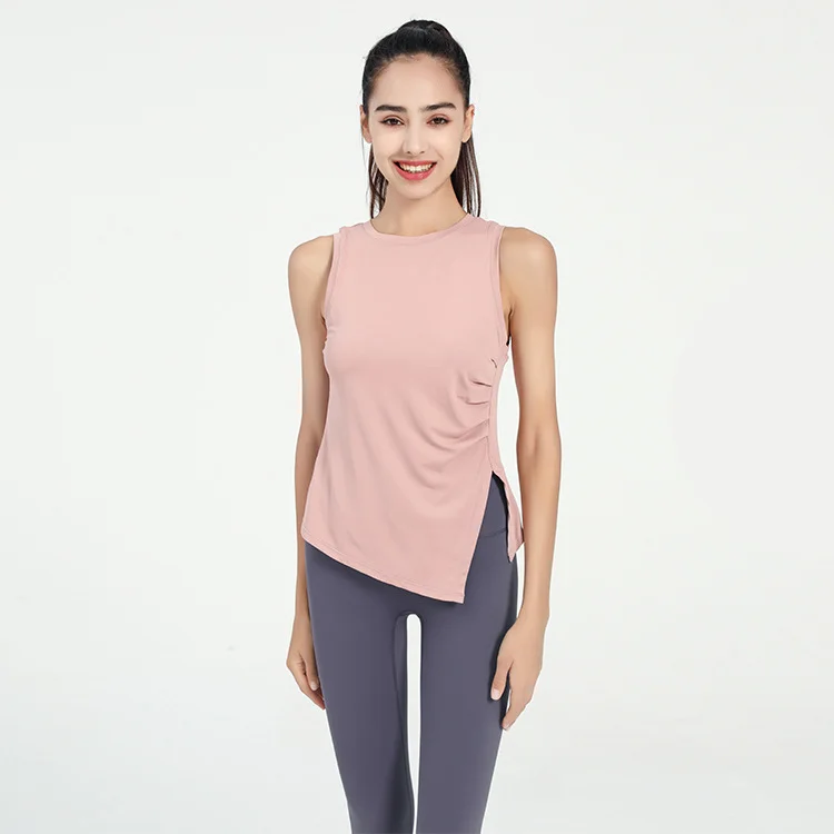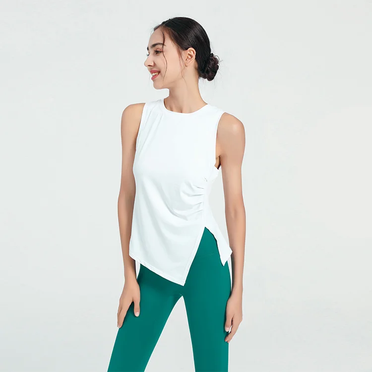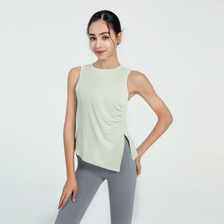 What sets this sports vest top apart is its unique asymmetrical side waist-in and slit design, which adds a touch of modern flair. This feature not only enhances your silhouette but also allows you to customize the fit. You can knot it for a more fitted look or leave it as is for a relaxed style. This versatile design makes it suitable for both casual wear and high-energy exercise sessions.