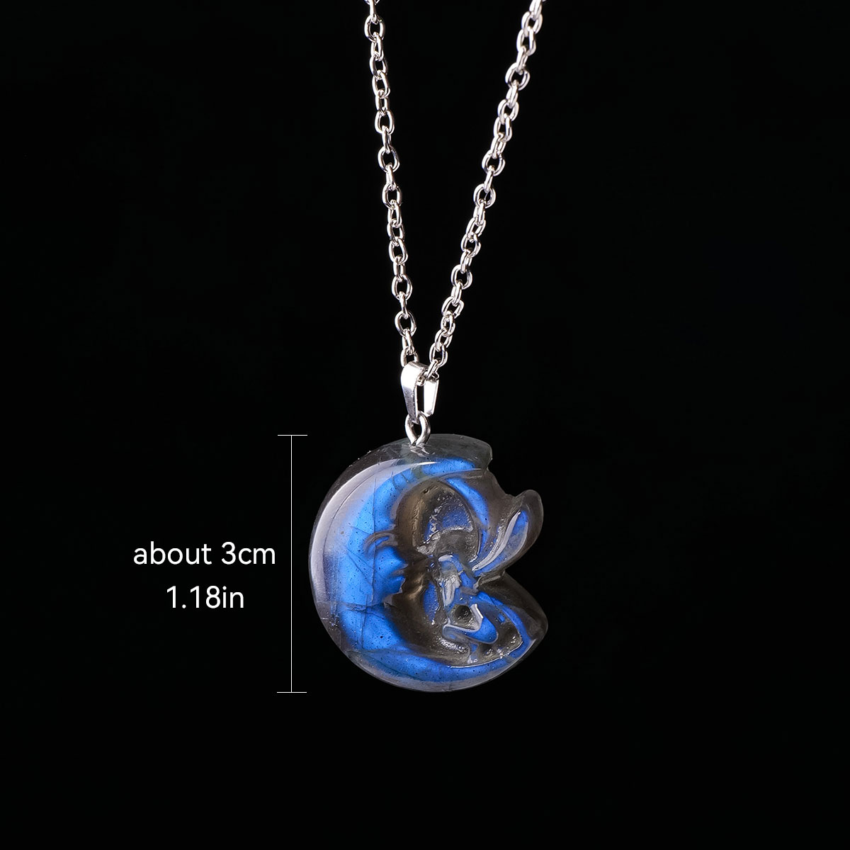 What sets this labradorite pendant apart is its natural beauty and the spiritual energy it carries. Each piece is a unique masterpiece, radiating vibrant flashes of color that represent protection and transformation. The moon fairy design adds an extra layer of charm, making it not only a spiritual tool but also a stunning piece of art that captures the essence of nature’s magic. Bring harmony and beauty into your life with this enchanting pendant today.