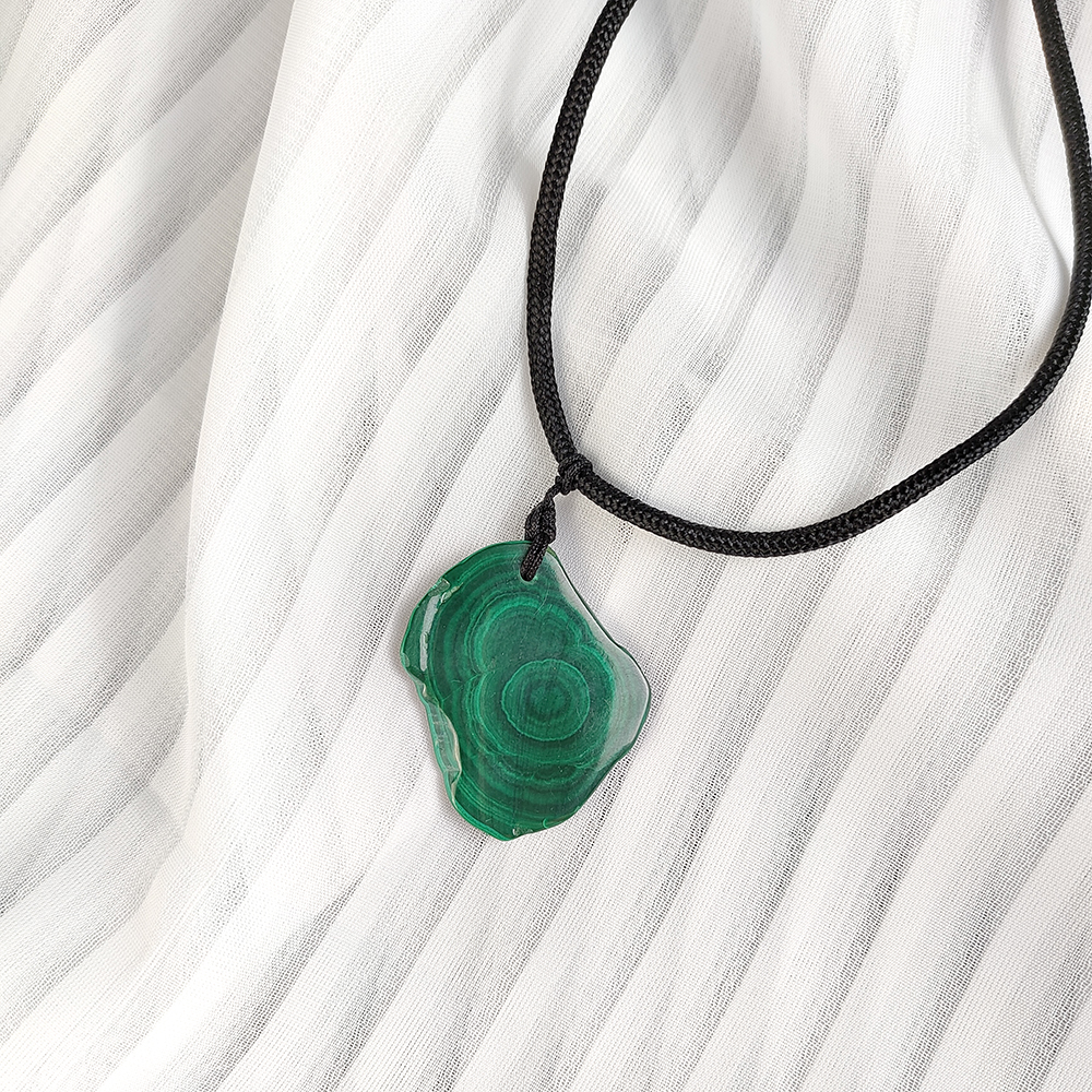 Perfect for both men and women, this malachite pendant serves not only as a beautiful accessory but also as a powerful healing stone. Known for its transformative properties, malachite is revered for promoting emotional balance, protection, and personal growth. This necklace is ideal for daily wear or special occasions, helping you stay grounded while adding a touch of natural beauty to your outfit.