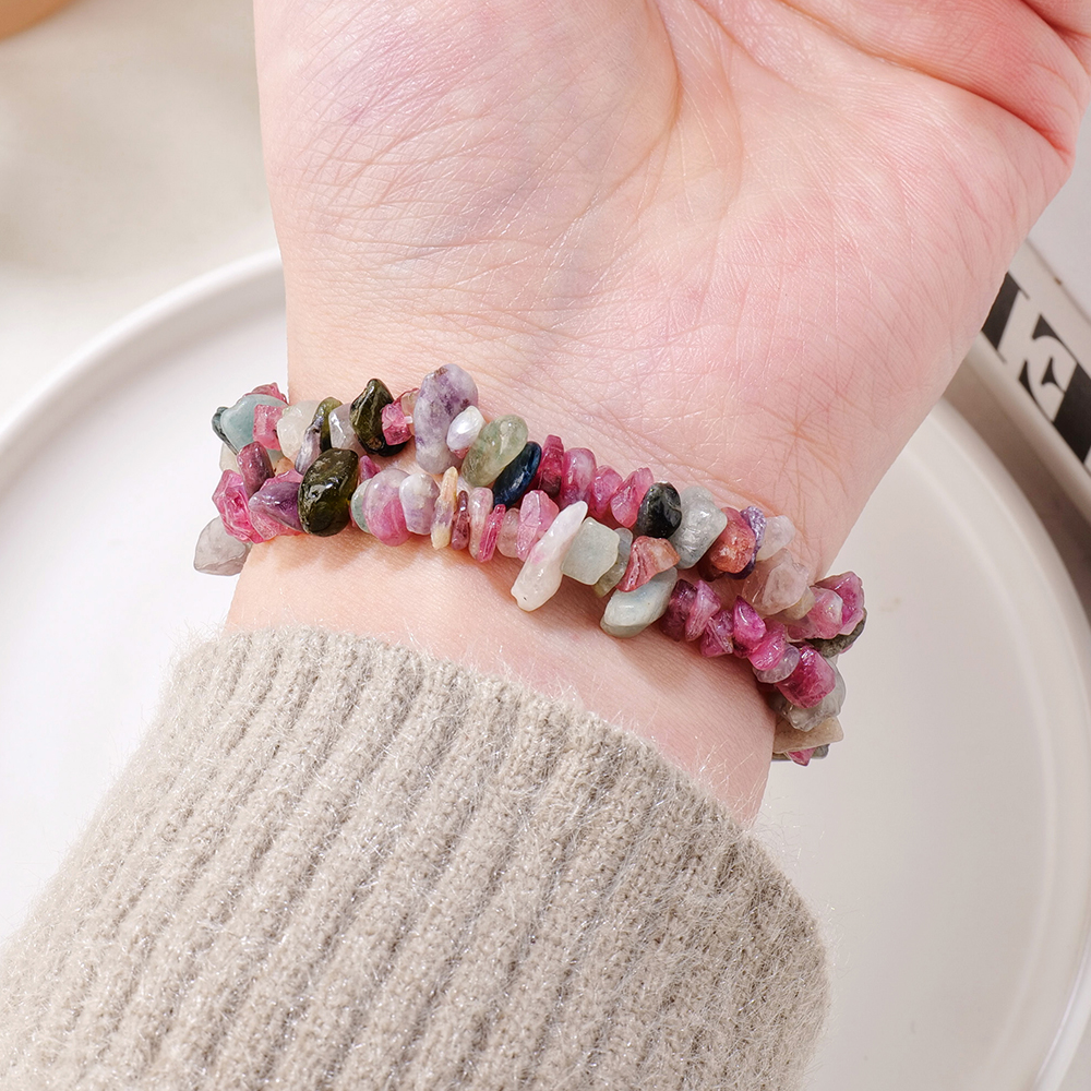 Elevate your style and energy with this stunning Natural Tourmaline Crystal Bracelet. Crafted from genuine Tourmaline stones, this bracelet features vibrant chip beads in their raw, natural form, carefully strung together on a comfortable stretch band. Each piece is unique, reflecting the natural beauty and energy of the Earth. With its versatile design, this bracelet is perfect for daily wear or as a meaningful addition to your healing rituals.