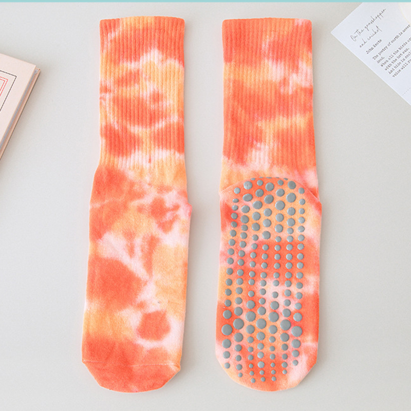 What sets these yoga socks apart is their perfect combination of functionality and style. The non-slip grip ensures you can focus entirely on your form, while the soft cotton material keeps your feet comfortable, even during the most challenging workouts. Plus, the vibrant tie-dye design adds a touch of fun to your fitness routine, making these socks a standout piece in any activewear collection.