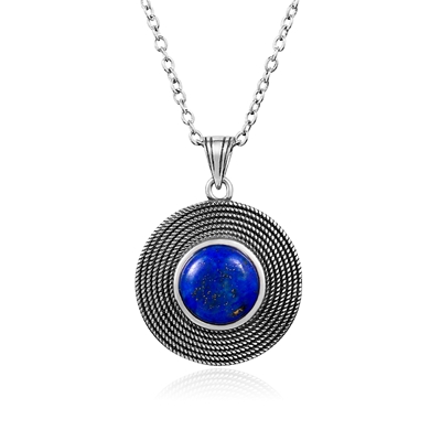 The necklace is made from high-quality materials, ensuring durability and comfort. The pendant, set in vintage silver with a classic round shape, showcases the natural beauty of the Lapis Lazuli stone, known for its calming and protective properties. The minimalist design of the necklace complements any outfit, adding a touch of refinement and grace.